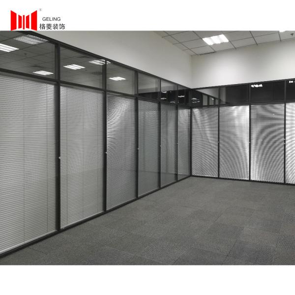 Black Aluminum Double Tempered Glass Demountable Partition Wall For Office: